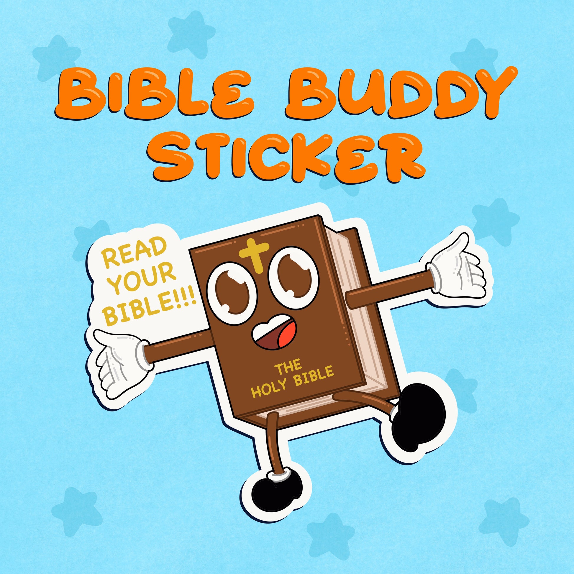 This sticker features a fun, character-style Bible bringing encouragement in the simplest way: “Read your Bible.” Sometimes we just need that little nudge, and this design delivers it with personality and charm.